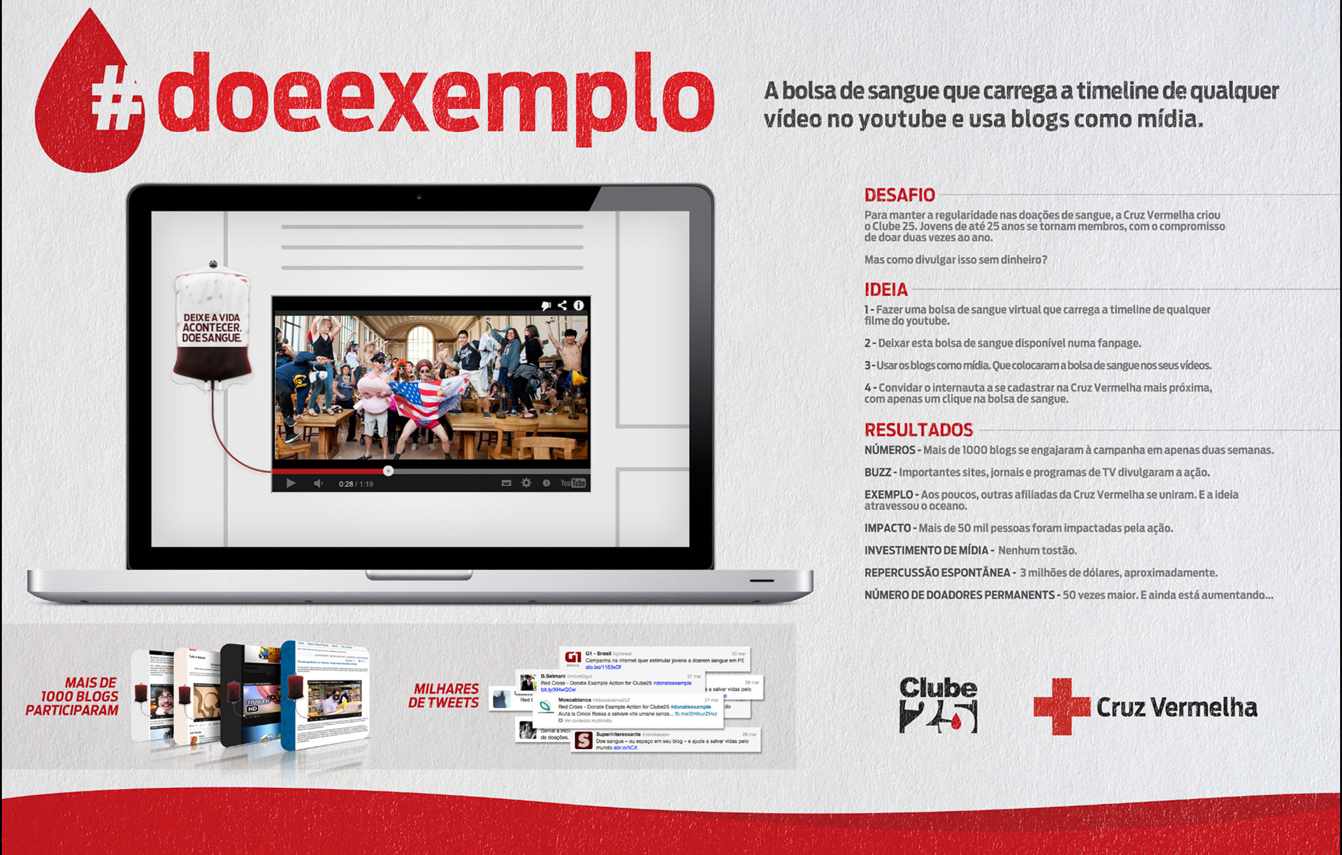[THE RED CROSS NEEDED BLOOD. I OFFERED MY SWEAT.] SABE COMO É: GRANDES PROPÓSITOS, PEQUENAS VERBAS. MESMO SEM GRANA, A CAMPANHA AUMENTOU A BASE PERMANENTE DE DOADORES DA CRUZ VERMELHA E SALVOU MUITAS VIDAS. [IT'S ALWAYS THE SAME: BIG PURPOSES, SMALL BUDGETS. BUT, EVEN WITH A SKINNY WALLET, THE CAMPAIGN INCREASED THE PERMANENT BASE OF BLOOD DONORS AND SAVED MANY LIVES.]